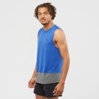 Salomon Cross Run Men's Tanks Blue / Grey | CA 76I49