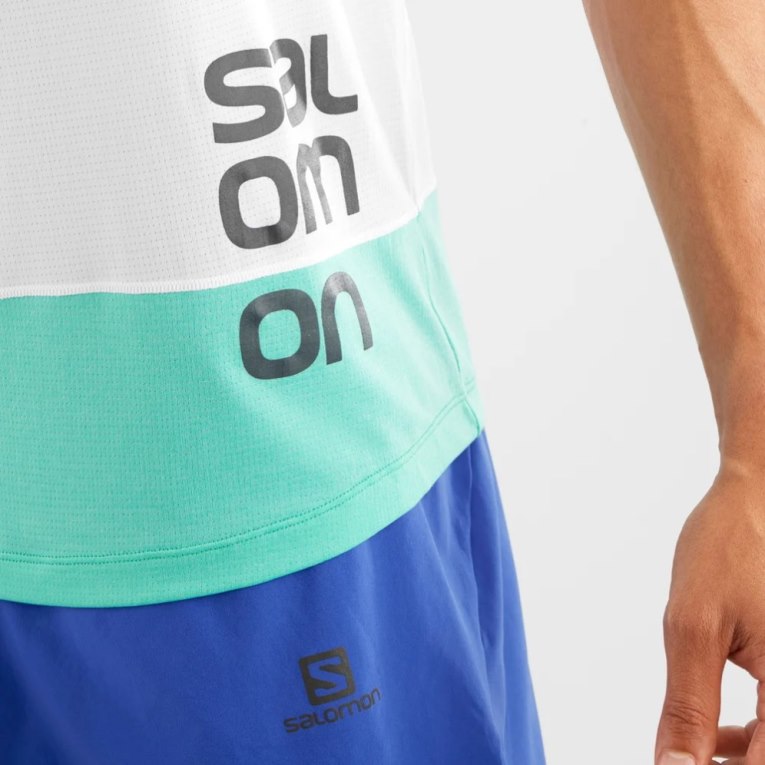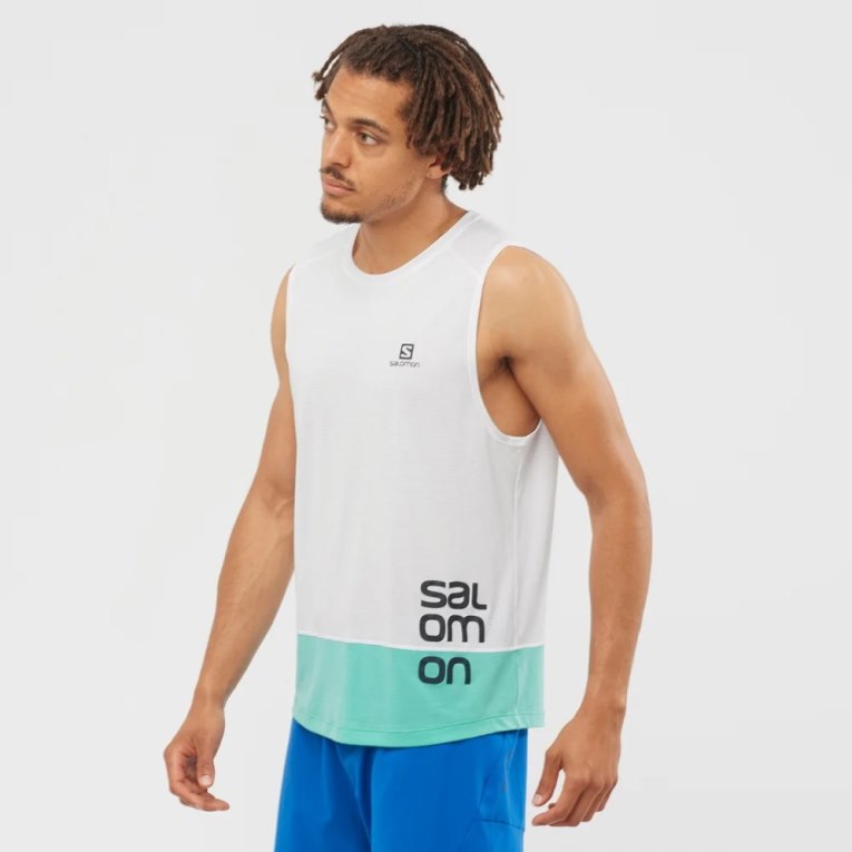 Salomon Cross Run Graphic Men's Tanks White / Turquoise | CA 39H45
