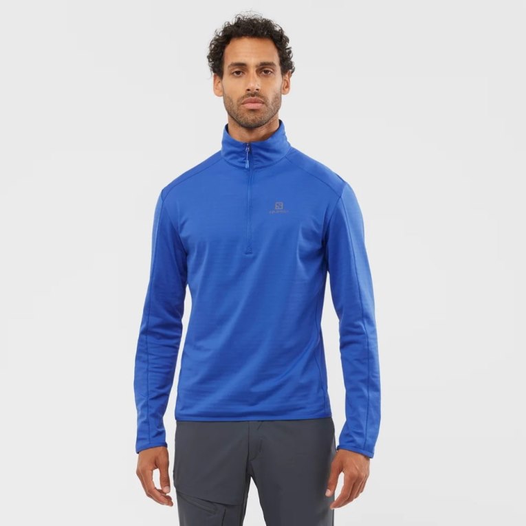 Salomon Essential Lightwarm Half Zip Men\'s Sweatshirt Blue | CA 96V82