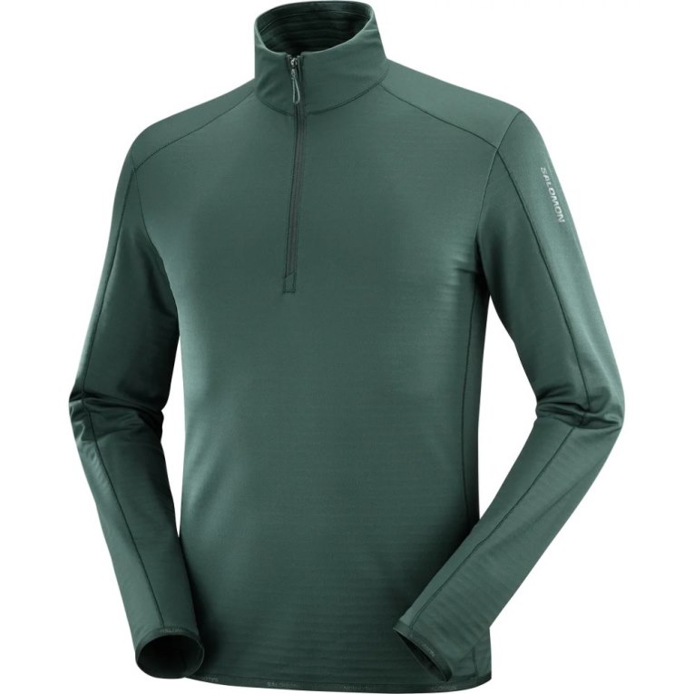 Salomon Essential Lightwarm Half Zip Men\'s Sweatshirt Green | CA 23J8