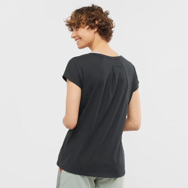 Salomon Essential Shaped Short Sleeve Women\'s T-Shirts Black | CA 38M75