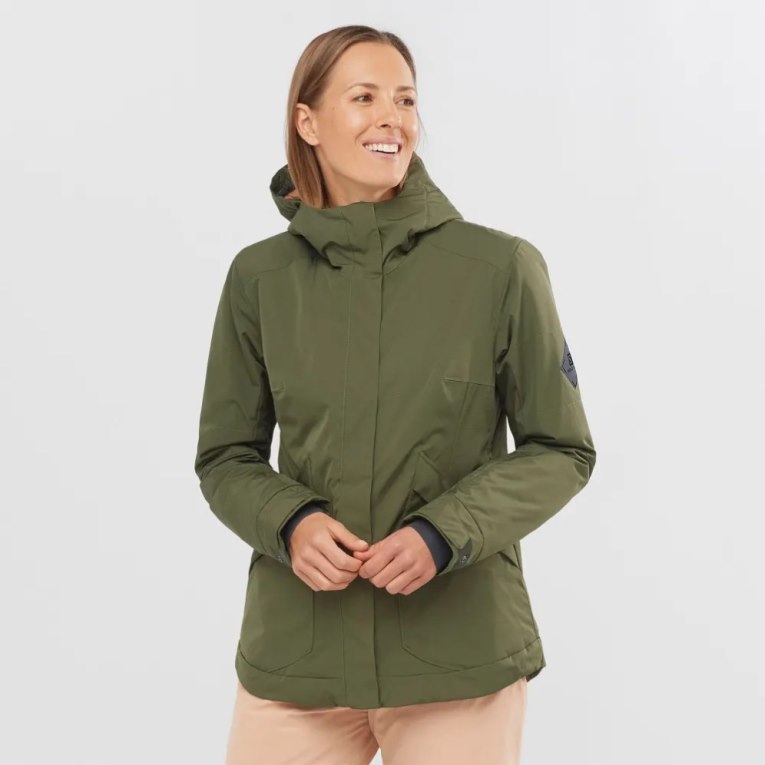 Salomon Snow Rebel Insulated Hoodie Women\'s Ski Jackets Olive | CA 62E57